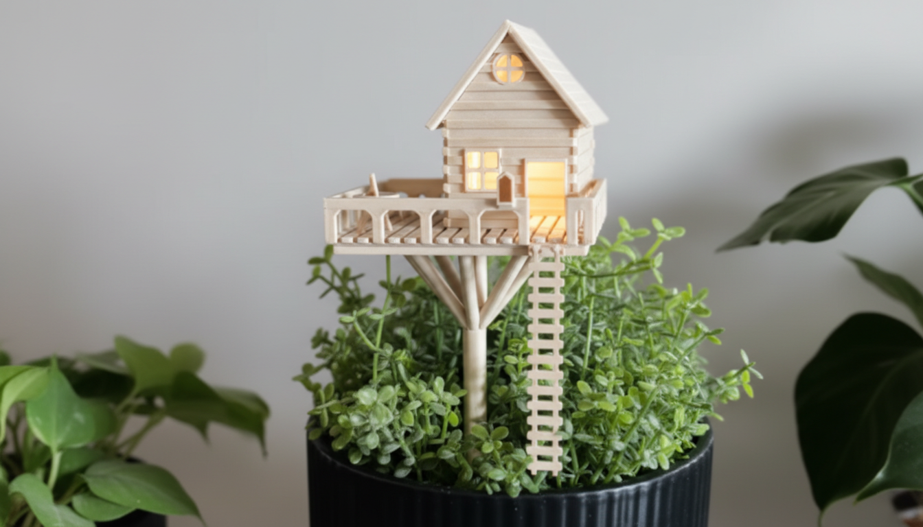 Transforme seu vaso em um mini cenário encantador com esta casinha decorativa produzida em impressão 3D. Um detalhe criativo e delicado para valorizar suas plantas e deixar seu ambiente ainda mais especial.