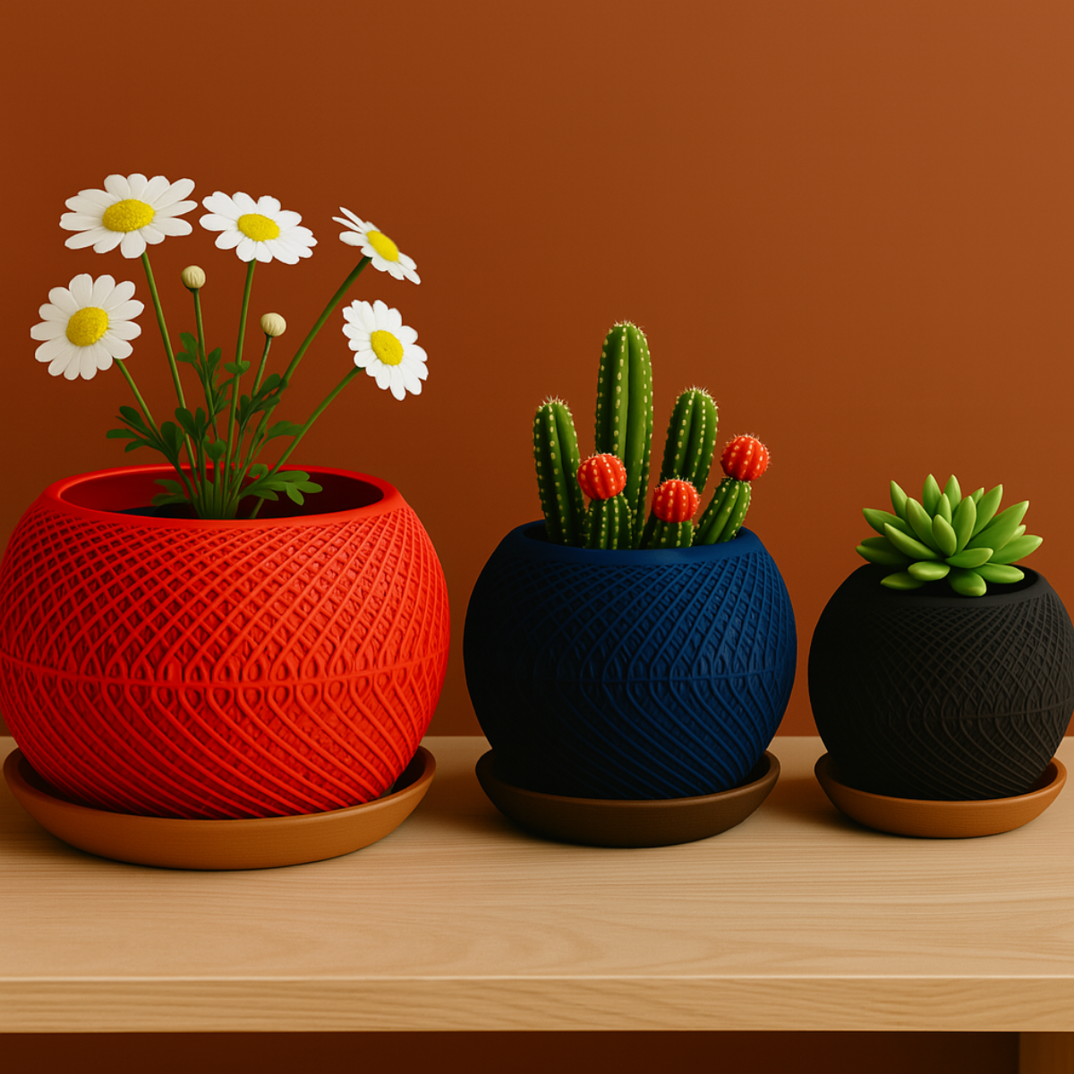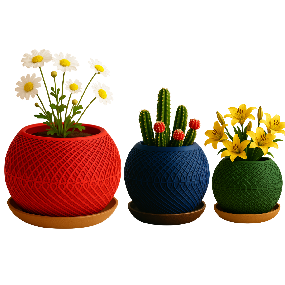 Todos os modelos são vazados, conta com furos de drenagem na base, garantindo a saúde das suas plantas ao evitar o acúmulo de água. Fabricado em PLA, um material sustentável, o Cachepô combina estilo e funcionalidade, sendo uma excelente escolha para os amantes da decoração. Funciona como cachepô, ou seja, deve ser utilizado para acomodar outros vasos com plantas em seu interior. Nao retém água diretamente. Material leve e reciclável, indicado para ambientes internos, externos, ideal para plantas pequenas, suculentas, cactus ou folhagens decorativas.