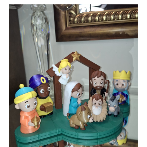 O conjunto inclui um estábulo que complementa as figuras, proporcionando um cenário completo e harmonioso. O estilo Chibi confere um ar lúdico e divertido, tornando-o uma excelente opção para famílias que desejam compartilhar a magia do Natal com crianças e adultos.